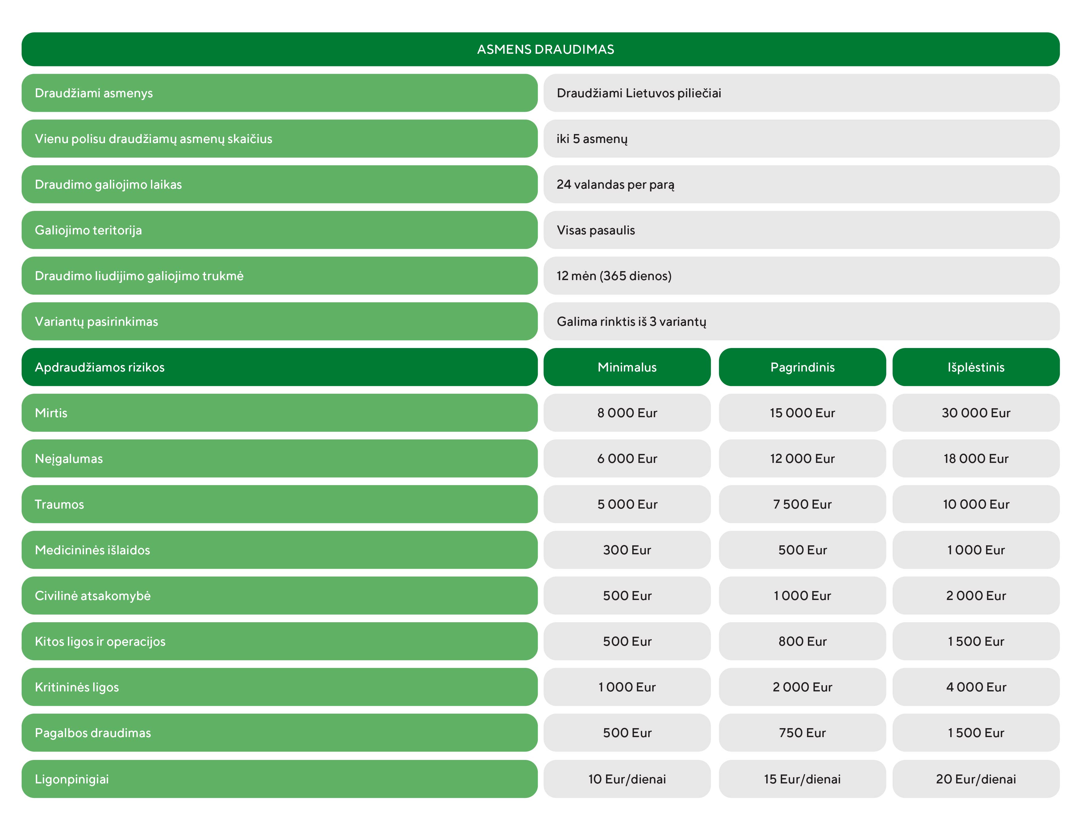 Asmens draudimų paketų palyginimas